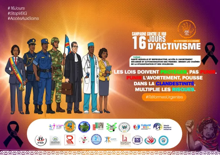 En RDC, notamment à Uvira et Bukavu, les 16 Jours d’activisme soulignent l’importance de lois protectrices pour réduire les risques sanitaires et défendre les DSSR.